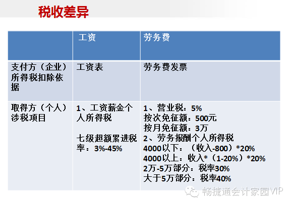 其實(shí)通過這一張對(duì)比圖我們就會(huì)發(fā)現(xiàn),先站在支付方,也就是付這兩千塊錢的企業(yè)角度而言,如果這兩千塊錢作為工資薪金的,起碼工資薪金它的扣稅憑證,或者是扣稅的憑據(jù),我們就直接以內(nèi)部自制的單據(jù)作為扣除憑證就可以了,我們的工資標(biāo),但是一旦作為勞務(wù)報(bào)酬列支的,必須要取得外部的發(fā)票,服務(wù)業(yè)勞務(wù)費(fèi)的發(fā)票,站在支付方企業(yè)而言,顯然是希望通過工資薪金走的。